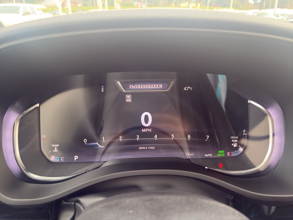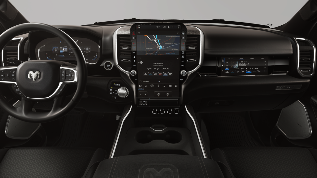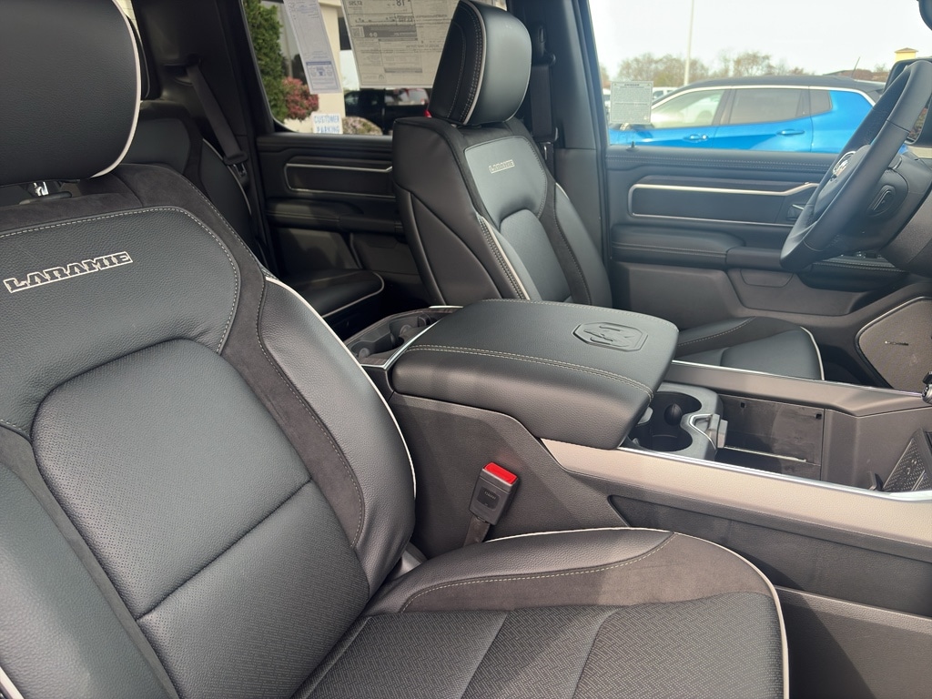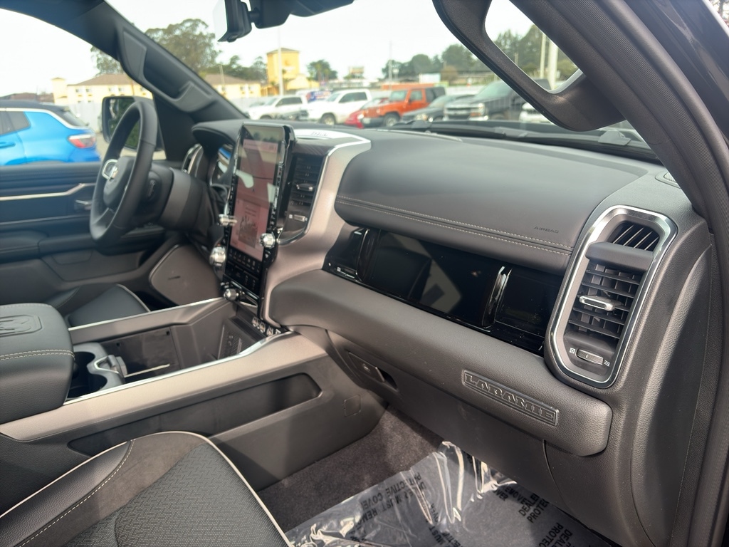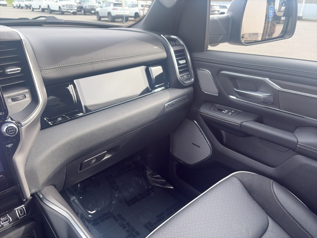Advanced Safety Group II: Exterior Mirrors Approach Lamps; Active Driving Assist System; Surround View Camera System; Evasive Steer Assist; Drowsy Driver Detection; Intersection Collision Assist System; Traffic Sign Recognition; 12-Way/1-way Trailer Connector. Quick Order Package 27H Laramie. Laramie Level 2 Equipment Group: SiriusXM Radio Service; USB Host Flip; Rain Sensitive Windshield Wipers; 14.4 Touchscreen Display; Integrated Center Stack Radio; Front Passenger Interactive Display; Integrated Voice Command with Bluetooth; Connectivity - US/Canada; Uconnect 5 Nav with 14.4 Display; GPS Navigation; 4G LTE Wi-Fi Hot Spot; Harman/kardon 19 Speaker Premium Sound; SiriusXM with 360L; Connected Travel and Traffic Services; Cluster 12 TFT Color Display; Power Tailgate. Night Edition: Black Headlamp Bezels; Auto Power-Folding Mirrors; 22 X 9 Forged Aluminum Wheels; Exterior Mirrors with Heating Element; Proximity Approach/departure Lamps; Auto Dim Exterior Driver Mirror; Anti-Spin Differential Rear Axle; Accent Color Door Handles; Black Interior Accents; Body Color Front Bumper; Grille Surround 3 Black Texture 2 Black; Body Color Rear Bumper with Step Pads; RAM Grille Badge - Black; Black Painted Exterior Mirrors Caps; Exterior Mirrors Approach Lamps; Accent Color Premium Power Mirrors; Exterior Mirrors with Supplemental Signals; Sport Performance Hood; Exterior Mirrors Courtesy Lamps; Black Exterior Truck Badging; Accent Color Tailgate Handle; Exterior Mirrors with Memory; Dual Exhaust with Black Tips; Convex Wide-Angle Exterior Mirror Insert; Black Tail Lamp Bezels. Technology Group: Head Up Display; LED CHMSL Lamp; Digital Rearview Mirror; 12-Way/1-way Trailer Connector. Bed Utility Group: MOPAR Spray in Bedliner; MOPAR Deployable Bed Step; MOPAR 4 Adjustable Cargo Tie-Down Hooks; Exterior 115V AC Outlet. Trailer Tow Group II: Trailer Light Check; Trailer Brake Control; Trailer Reverse Steering Control; Trailer Tire Pressure Monitoring System. 22 X 9 Forged Aluminum Wheels. Dual-Pane Panoramic Sunroof. Anti-Spin Differential Rear Axle. Trailer Brake Control. Diamond Black Crystal PC. MOPAR Front and Rear Rubber Floor Mats. 3.92 Rear Axle Ratio. Rear Wheelhouse Liners. **Equipment listed is based on original vehicle build and subject to change. Please confirm the accuracy of the included equipment by calling the dealer prior to purchase.**