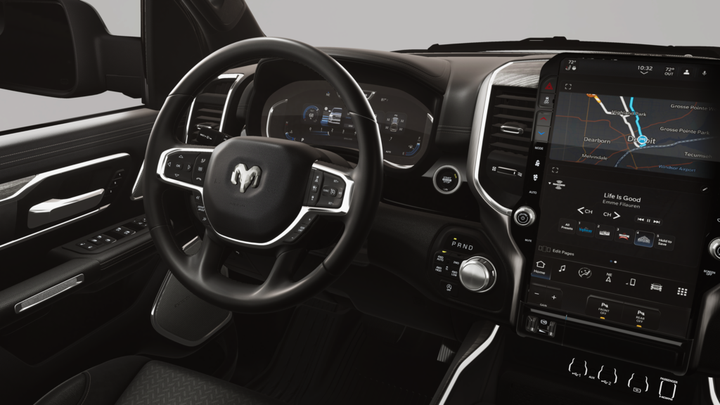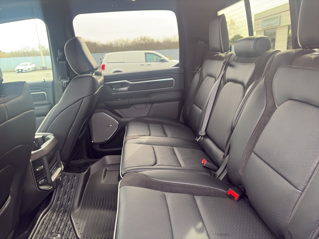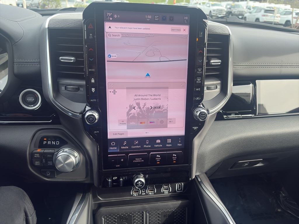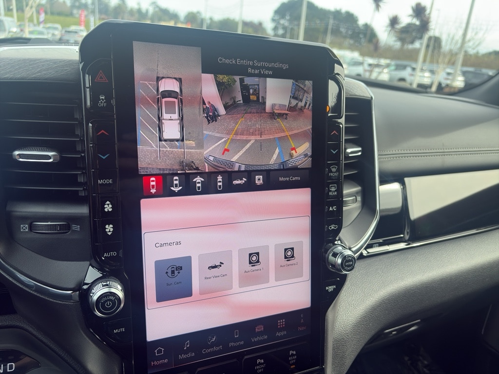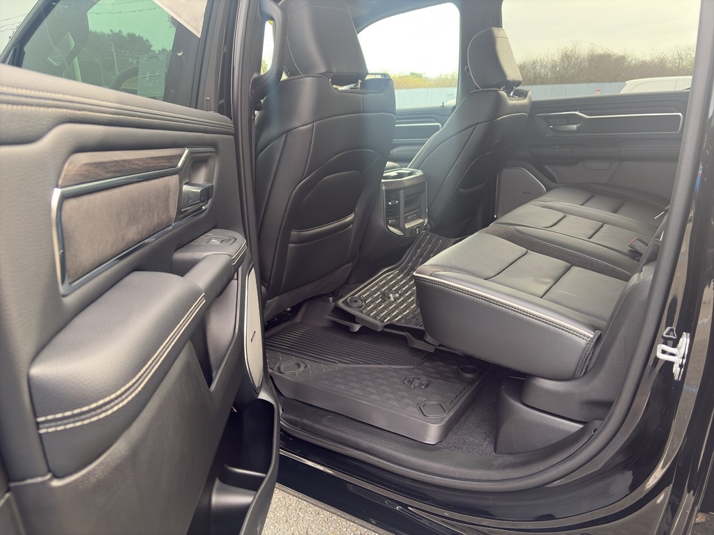 Advanced Safety Group II: Exterior Mirrors Approach Lamps; Active Driving Assist System; Surround View Camera System; Evasive Steer Assist; Drowsy Driver Detection; Intersection Collision Assist System; Traffic Sign Recognition; 12-Way/1-way Trailer Connector. Quick Order Package 27H Laramie. Laramie Level 2 Equipment Group: SiriusXM Radio Service; USB Host Flip; Rain Sensitive Windshield Wipers; 14.4 Touchscreen Display; Integrated Center Stack Radio; Front Passenger Interactive Display; Integrated Voice Command with Bluetooth; Connectivity - US/Canada; Uconnect 5 Nav with 14.4 Display; GPS Navigation; 4G LTE Wi-Fi Hot Spot; Harman/kardon 19 Speaker Premium Sound; SiriusXM with 360L; Connected Travel and Traffic Services; Cluster 12 TFT Color Display; Power Tailgate. Night Edition: Black Headlamp Bezels; Auto Power-Folding Mirrors; 22 X 9 Forged Aluminum Wheels; Exterior Mirrors with Heating Element; Proximity Approach/departure Lamps; Auto Dim Exterior Driver Mirror; Anti-Spin Differential Rear Axle; Accent Color Door Handles; Black Interior Accents; Body Color Front Bumper; Grille Surround 3 Black Texture 2 Black; Body Color Rear Bumper with Step Pads; RAM Grille Badge - Black; Black Painted Exterior Mirrors Caps; Exterior Mirrors Approach Lamps; Accent Color Premium Power Mirrors; Exterior Mirrors with Supplemental Signals; Sport Performance Hood; Exterior Mirrors Courtesy Lamps; Black Exterior Truck Badging; Accent Color Tailgate Handle; Exterior Mirrors with Memory; Dual Exhaust with Black Tips; Convex Wide-Angle Exterior Mirror Insert; Black Tail Lamp Bezels. Technology Group: Head Up Display; LED CHMSL Lamp; Digital Rearview Mirror; 12-Way/1-way Trailer Connector. Bed Utility Group: MOPAR Spray in Bedliner; MOPAR Deployable Bed Step; MOPAR 4 Adjustable Cargo Tie-Down Hooks; Exterior 115V AC Outlet. Trailer Tow Group II: Trailer Light Check; Trailer Brake Control; Trailer Reverse Steering Control; Trailer Tire Pressure Monitoring System. 22 X 9 Forged Aluminum Wheels. Dual-Pane Panoramic Sunroof. Anti-Spin Differential Rear Axle. Trailer Brake Control. Diamond Black Crystal PC. MOPAR Front and Rear Rubber Floor Mats. 3.92 Rear Axle Ratio. Rear Wheelhouse Liners. **Equipment listed is based on original vehicle build and subject to change. Please confirm the accuracy of the included equipment by calling the dealer prior to purchase.**